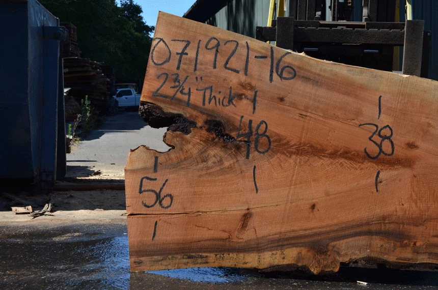 Bark inclusion in crotch, Cracks from left end to center, End checks right, Light figure