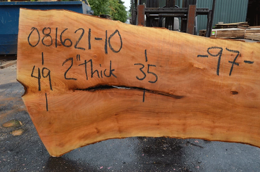 Small sound knots, Small cracks on backside, Thins on left, Nail top right, Small bark inclusions right